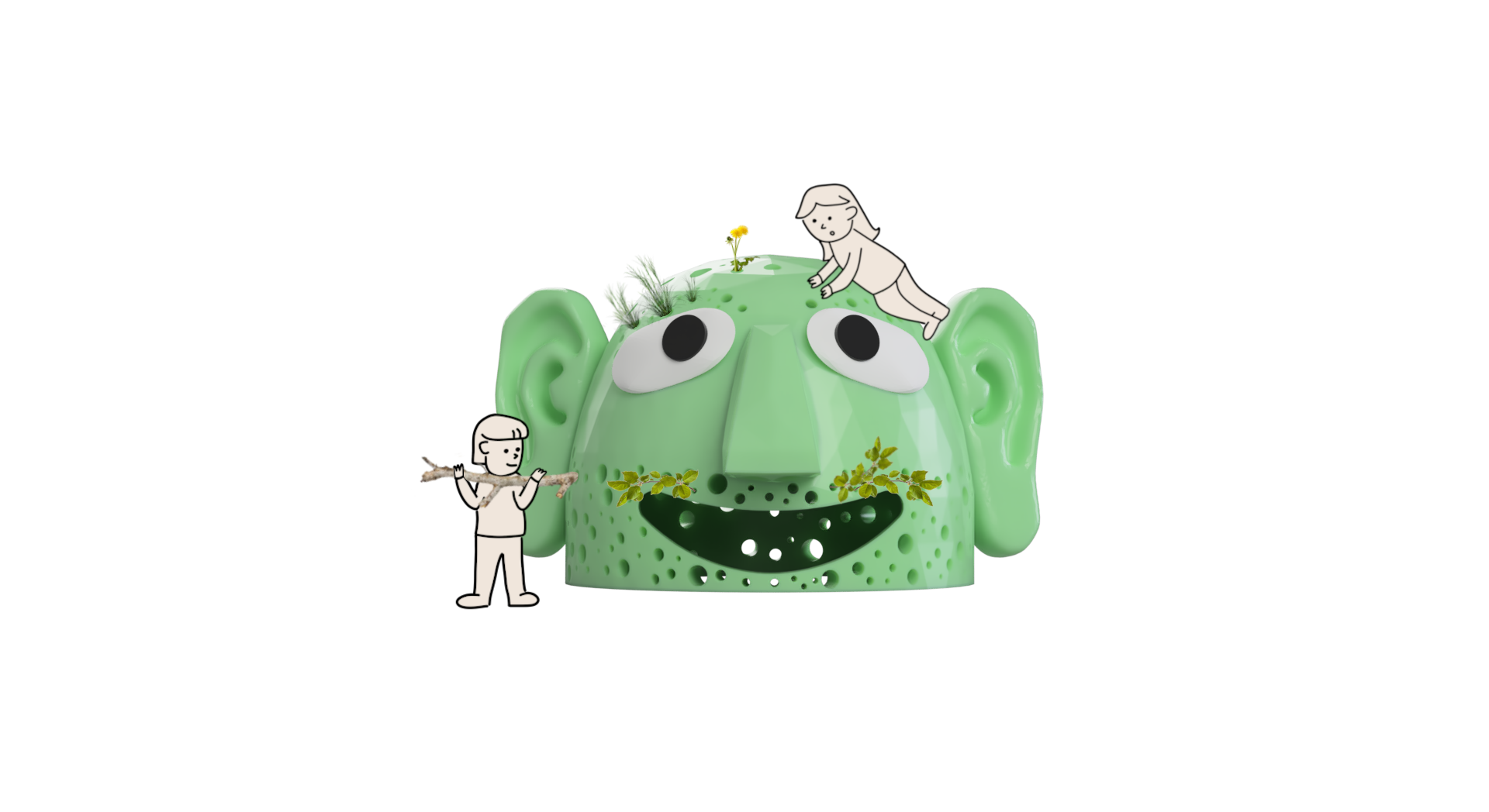 Det blev i samarbejde med børnene Liva, Holly, Willum og Ben til disse skulpturelle ‘legekammerater’.