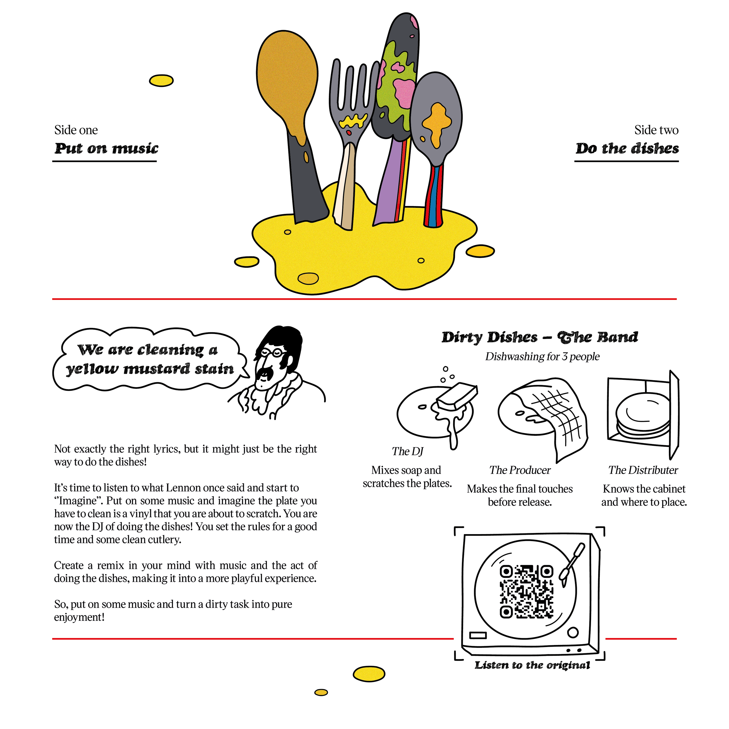 Gennem play-teori og observation af egen adfærd (jeg danser, når jeg tager opvasken, hvis jeg sætter musik på) blev en tanke til: En tallerken har samme form som en LP, og at stå og skrubbe med en opvaskebørste minder om at scrathe en plade.